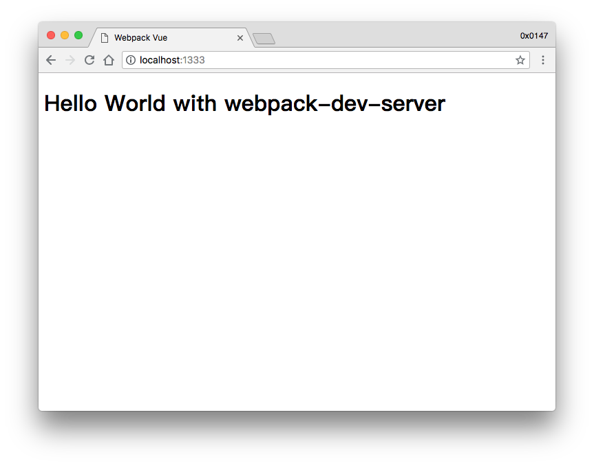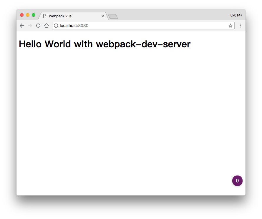 切换到浏览器,打开 http:localhost:8080。回到在 app.js 中再次修改 template 为 <h1>Hello World with webpack-dev-server</h1>,查看终端,会进行自动重新编译打包,切换到浏览器,页面主动刷新内容得到了更新。