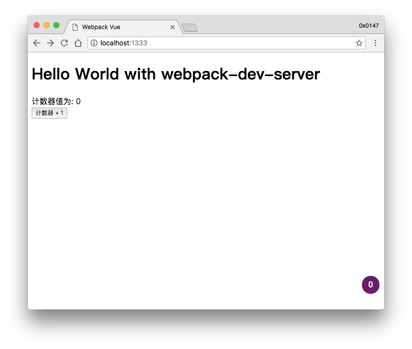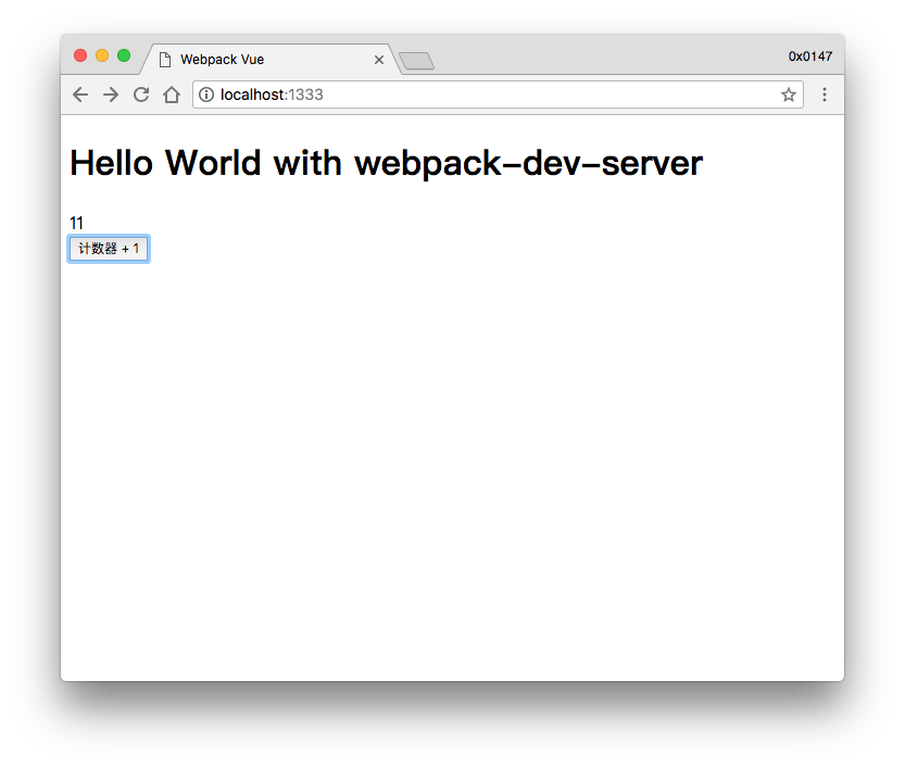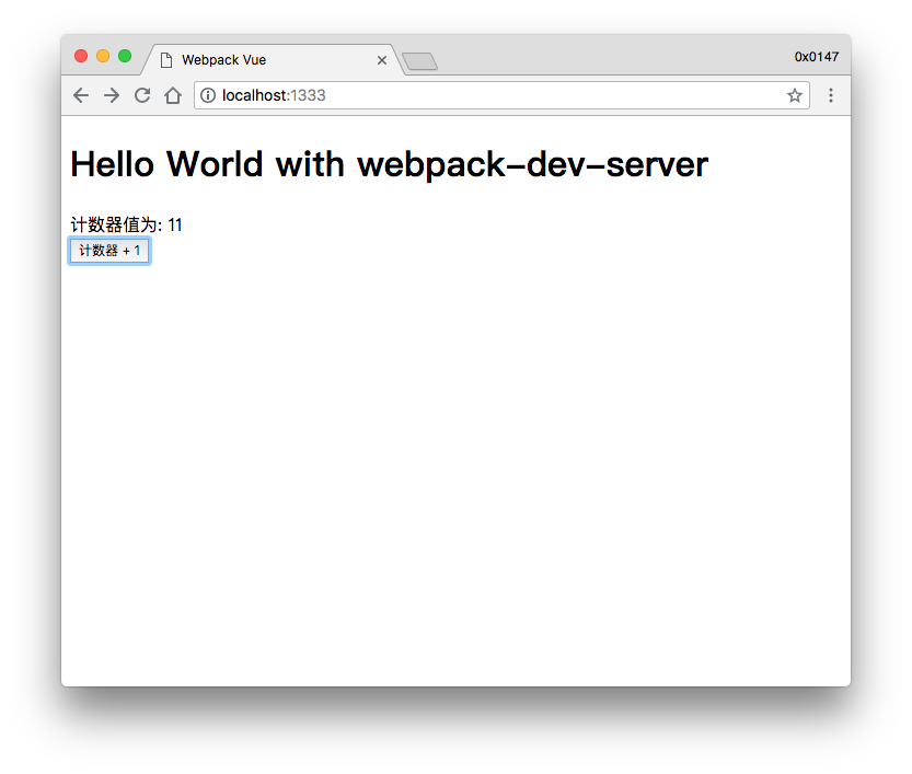 打开浏览器会看到计数器、以及 console 中显示 [WDS] Hot Module Replacement enabled。