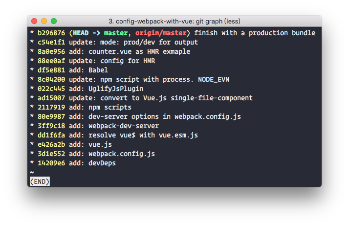 到上一个提交已经完成,这里最后提交了一个 mode: production 的 bundle.js。